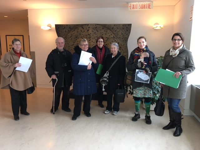 On January 23, a delegation delivered a petition with over 2,400 names to the offices of the Mayor, Councillor Marianne Wilkinson, Minister Kathryn McGarry, Urbandale and Richcraft. Media Release.
